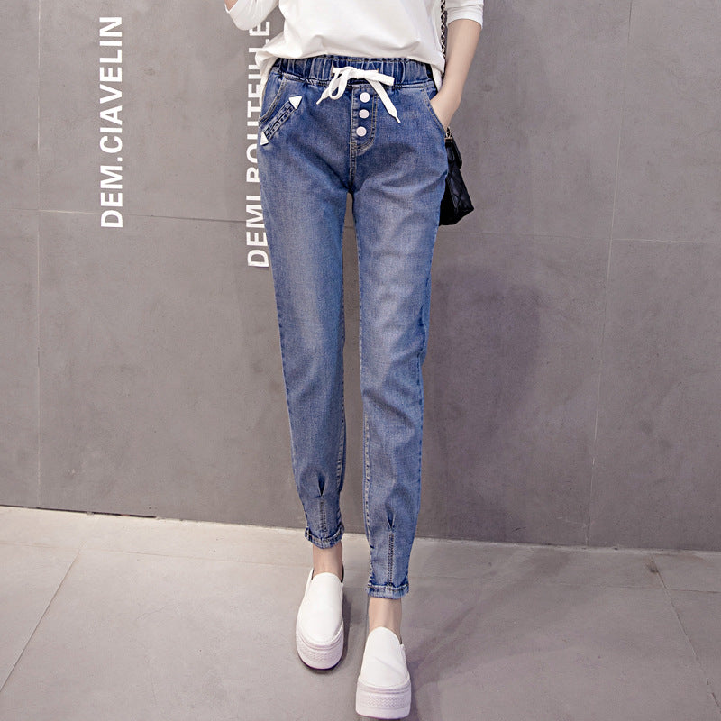 Large Size WOMEN'S Jeans Trousers Women's Fat Mm Autumn Clothing 2016 High-waisted Large GIRL'S Elastic Waist Harem Pants